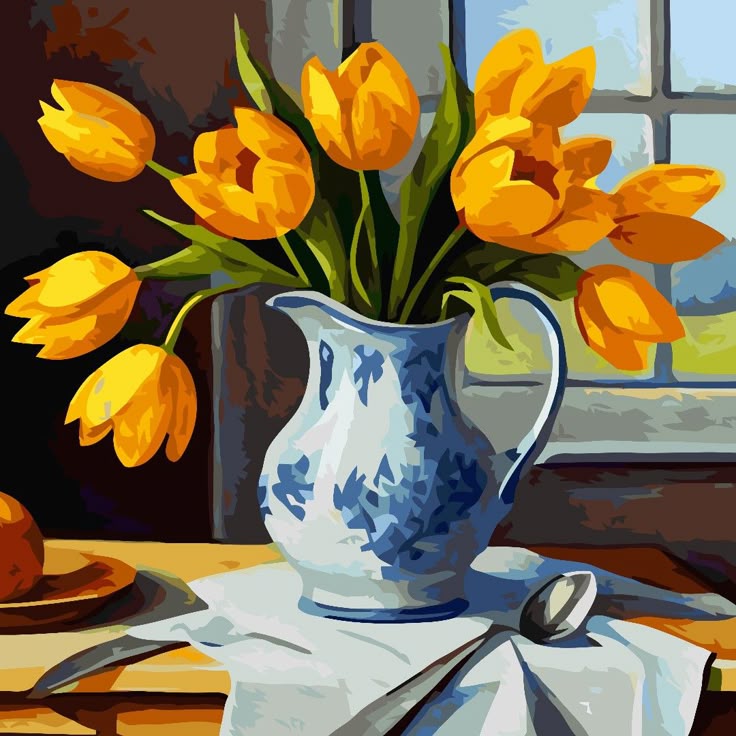 این بوم رنگ آمیزی با اعداد بزرگسالان طرحی زیبا از لالههای زرد در گلدان کلاسیک را ارائه میدهد که حس آرامش و طراوت بهاری را به فضای شما میآورد. کیت رنگ آمیزی مناسب علاقهمندان هنر، کاهش استرس و دکوراسیون منزل است. مناسب هدیه، تمرکز ذهن و خلق یک تابلوی هنری حرفهای در خانه.