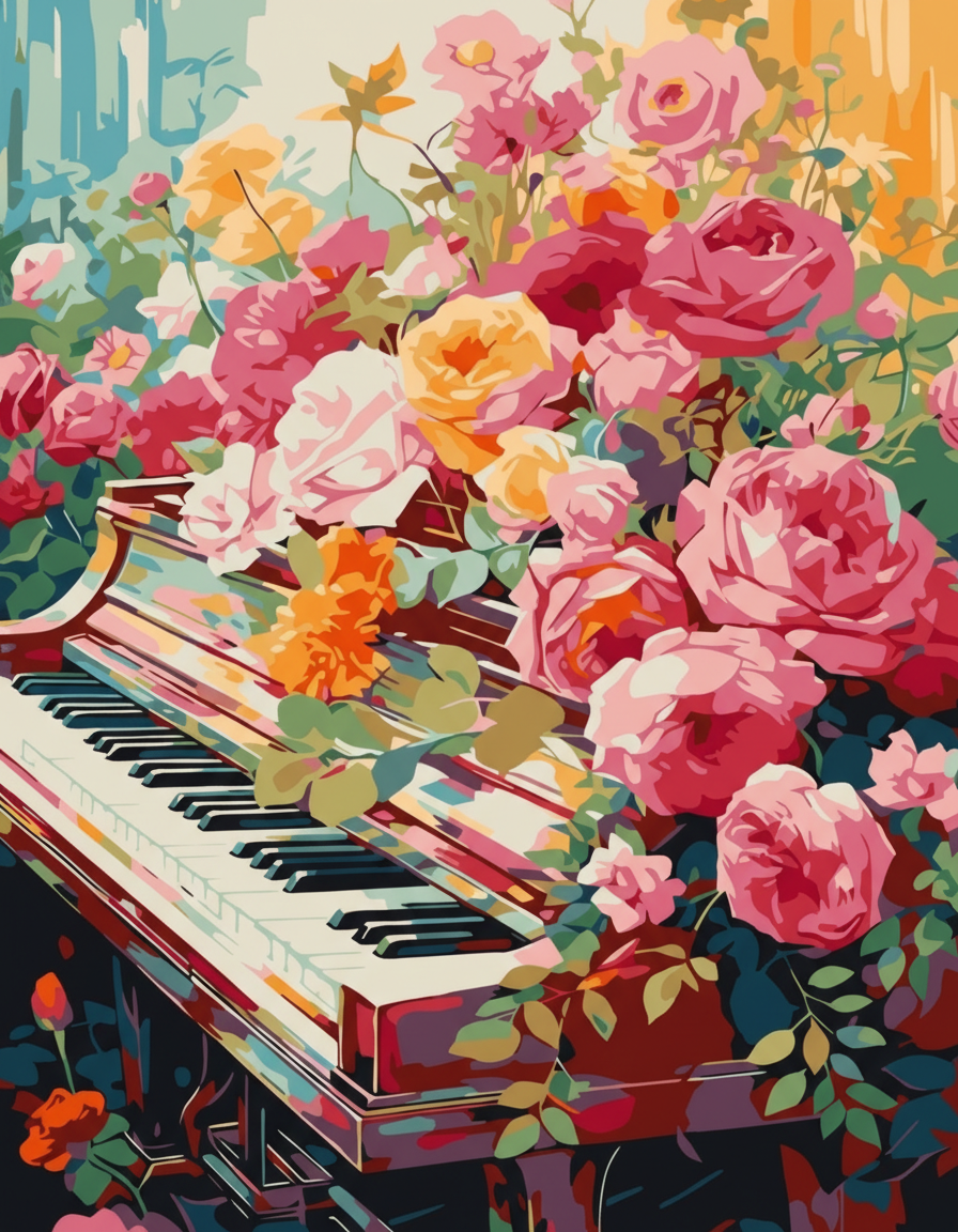 کیت رنگ آمیزی با اعداد بزرگسالان از پیانویی محصور شده در گلستانی زیبا از گل های رنگارنگ. تداعی از پیوند طبیعت و موسیقی روح نواز. این کیت می تواند زیبایی چشمگیری به اتاق شما بدهد و علاوه بر آن یک هدیه بنظیر برای ارائه به دوستان و عزیزان شما است.