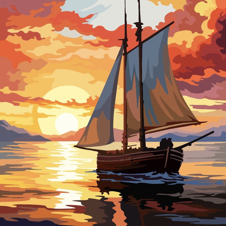 قایقی در مسیر نور، در دل دریایی آرام و آسمانی پوشیده از آتشِ غروب.