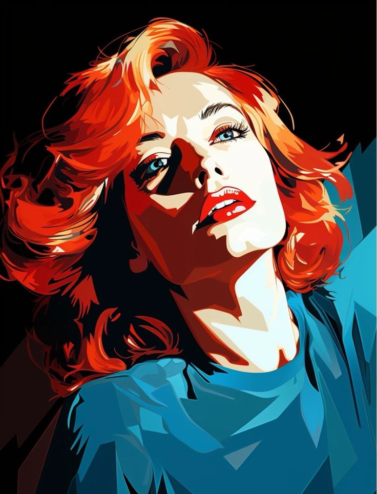 کیت رنگ آمیزی با اعداد پرترهای دراماتیک و جسورانه از زنی با موهای آتشین و لبهای قرمز براق در سبک پاپآرت؛ پر از انرژی و جذابیت.