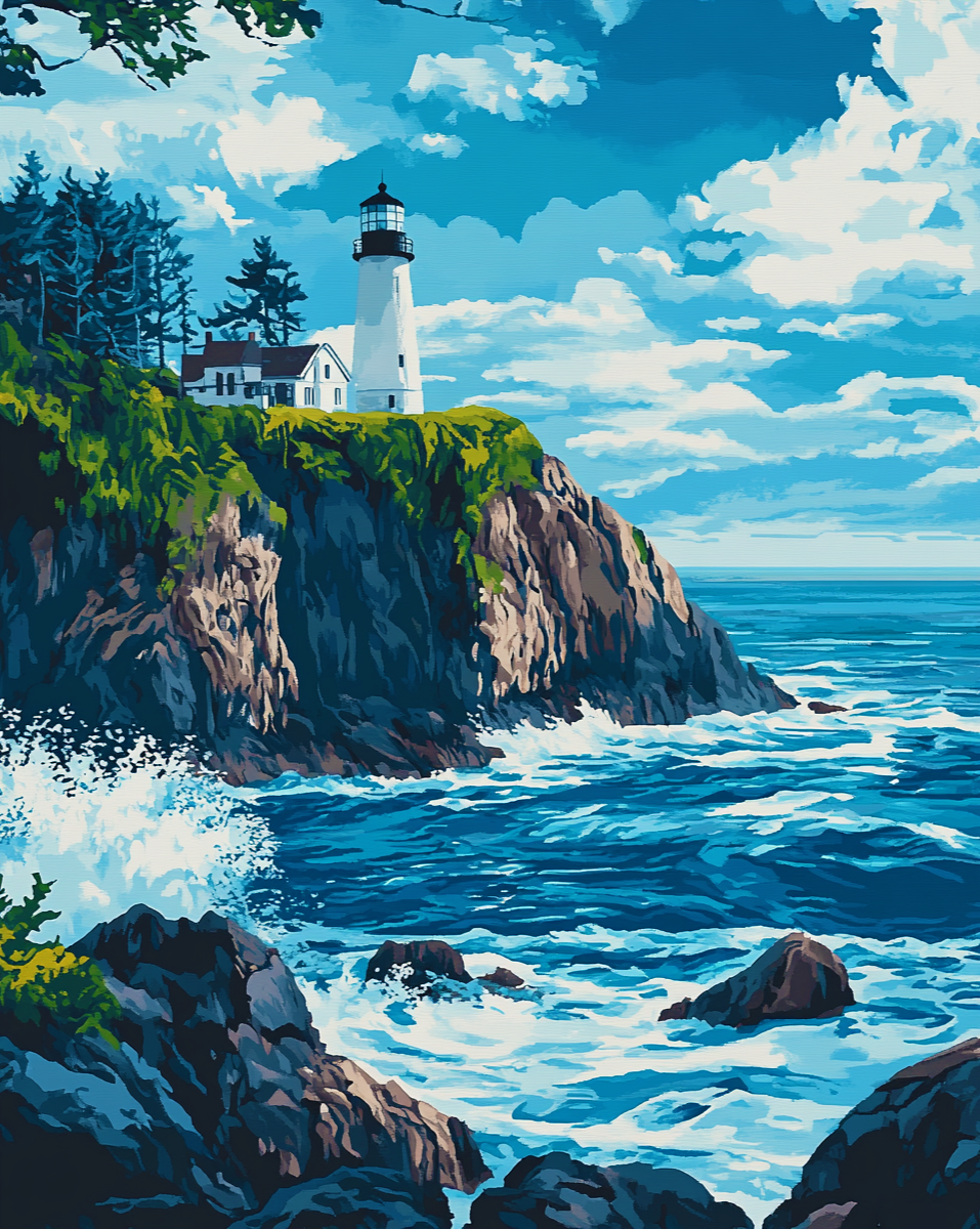 فانوس دریایی بر بلندای صخره، نوری برای راهنمایی کشتیها در میان موجهای خروشان.