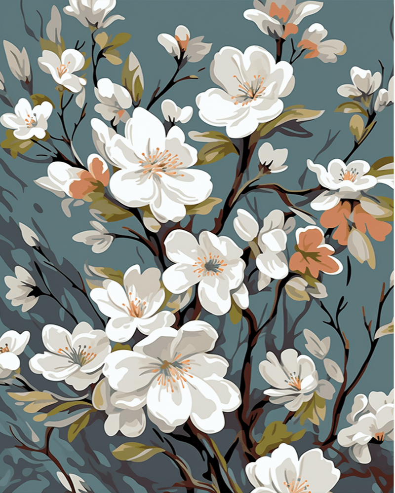 تصویری از شاخههای ظریف شکوفههای سفید روی زمینه فیروزهای؛ آرامش ژاپنی در یک نگاه.