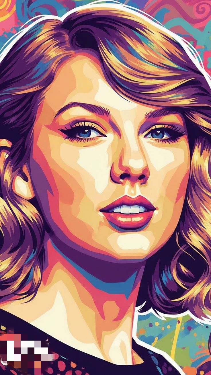 پرترهای رنگارنگ از تیلور سویفت، با جزئیات زنده و نگاهی پرقدرت که احساس و اعتمادبهنفس را نشان میدهد.