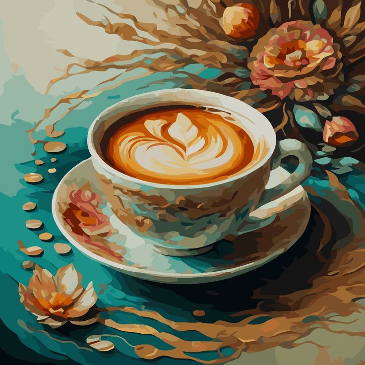 فنجانی قهوه با طرح قلب زیبا، احاطهشده با گلهای خشک و رنگهای گرم؛ شروع آرام و دلانگیز یک روز.