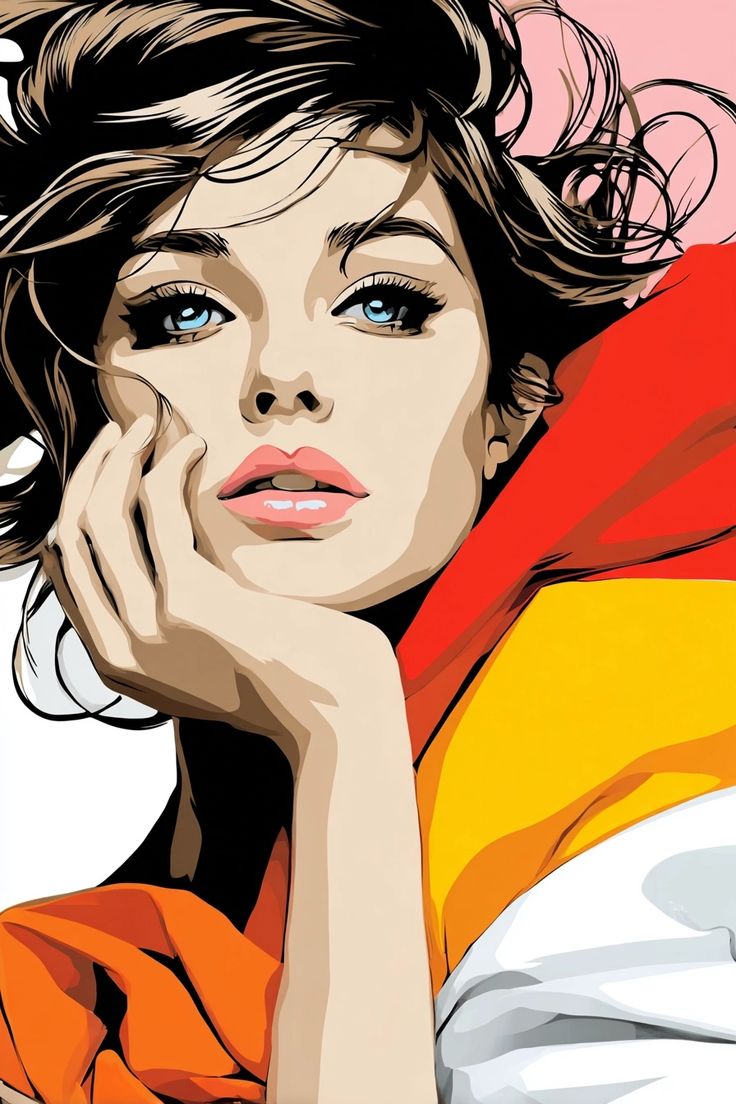 چهرهی زنی با چشمان آبی درخشان و شالی رنگارنگ، آمیزهای از زیبایی، اندیشه و لطافت زنانه است.