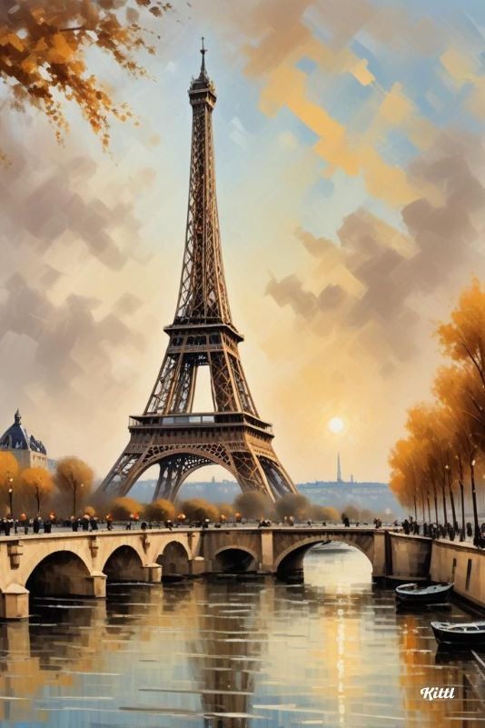 نقاشی زیبا از برج ایفل و رود سن (Seine) در پاریس مناسب بزرگسالان و عاشقان پاریس