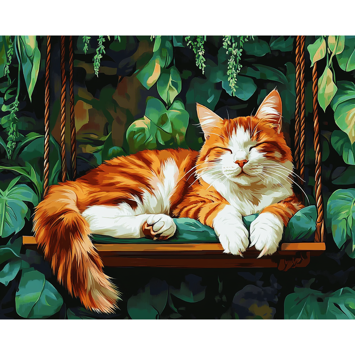 نقاشی گربه ی نارنجی خوابیده بر روی تاب
