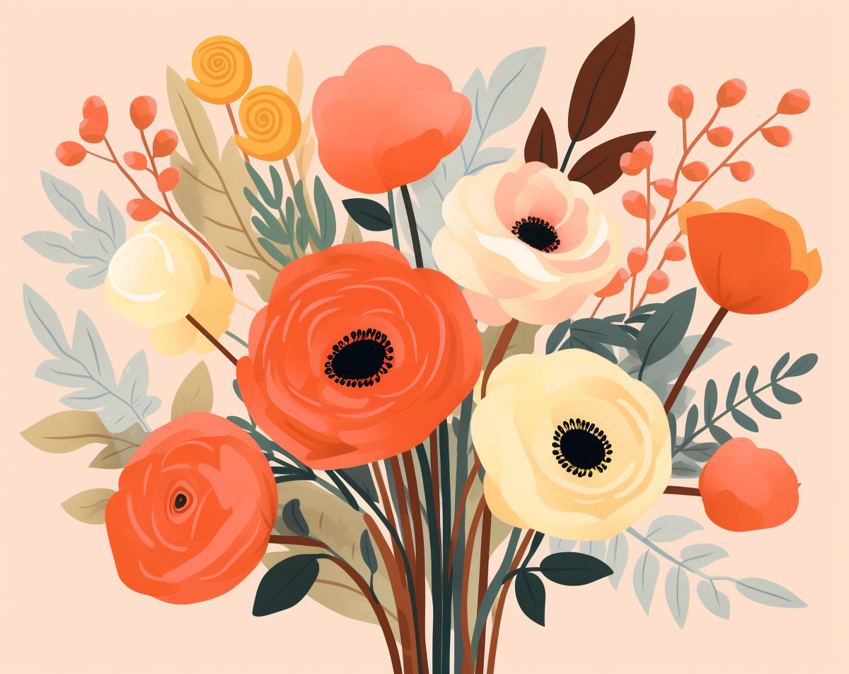 تصویری مینیمال از ترکیب گلهای نارنجی و کرم بر زمینهای روشن که آرامش، تازگی و لطافت طبیعت را به نشان می دهد.